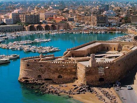 The Koules or Castello a Mare (“Fort on the Sea” in Italian) is a fortress located at the entrance of the old port of Heraklion, Crete. It was built by the Republic of Venice in the early 16th century.
